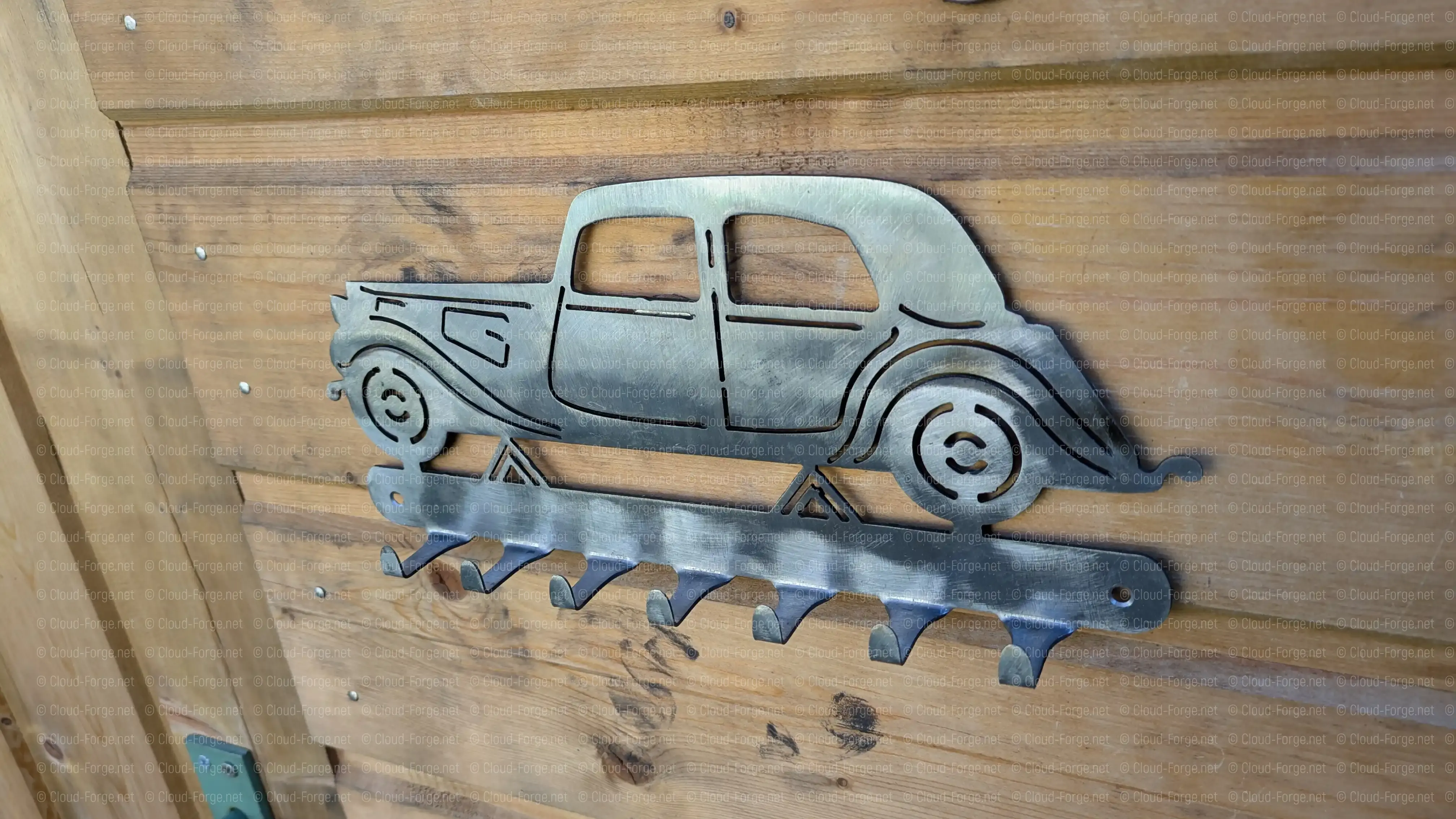 Idéal dans un garage, une salle de collection ou l’entrée d’une maison. Le motif Citroën Traction est découpé avec précision dans de l’acier 1,5 mm et livré en finition métal nu (patine naturelle) ou en peinture noire mat (+10 €).