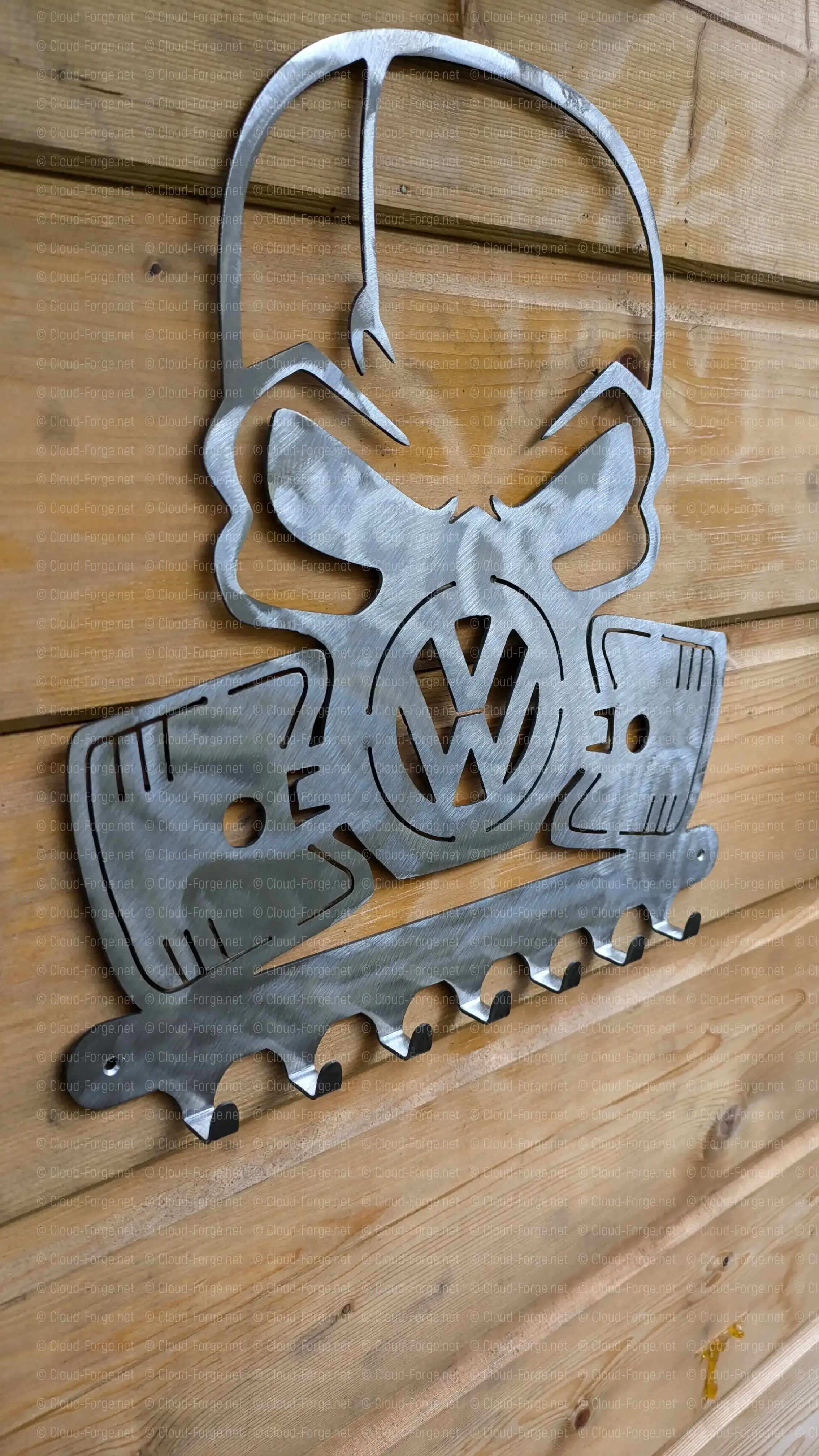 Idéal dans un garage, un atelier ou un bureau de passionné. Le motif VW est découpé avec précision dans de l’acier 1,5 mm et livré en finition métal nu (patine naturelle) ou en peinture noire mat (+10 €).