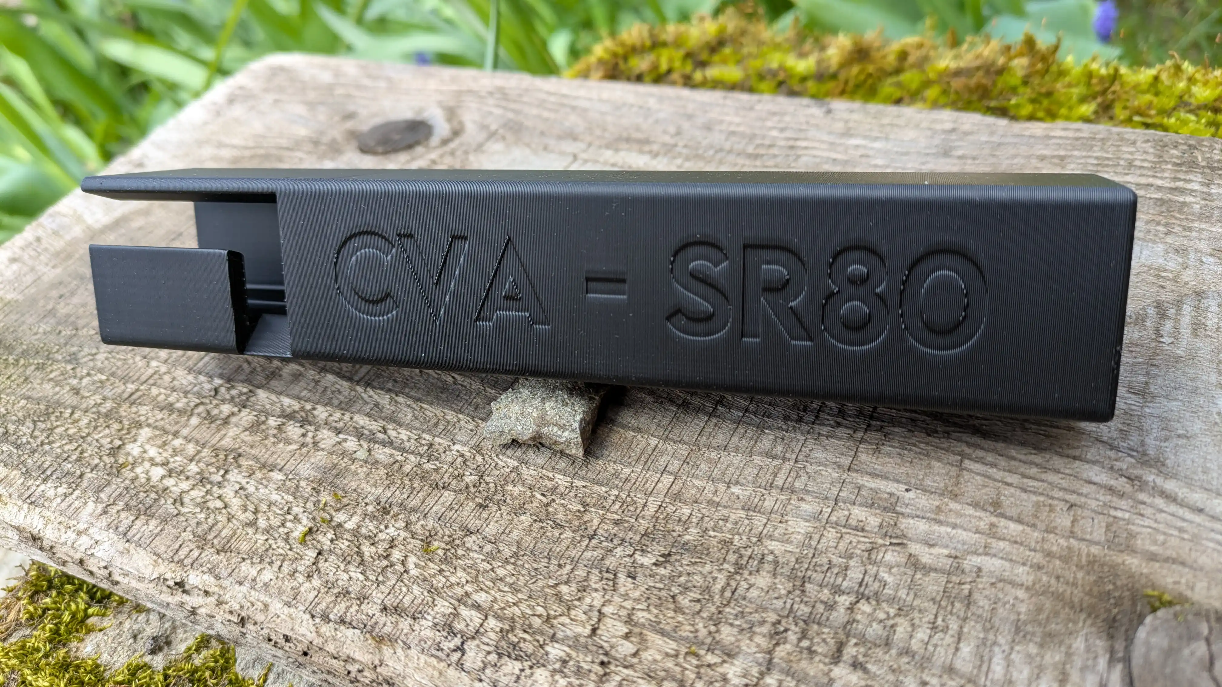 Le modèle « CVA SR80 » est identifié directement sur l’étui — pas d’étiquette, pas de confusion quand vous avez plusieurs culasses sur l’établi.