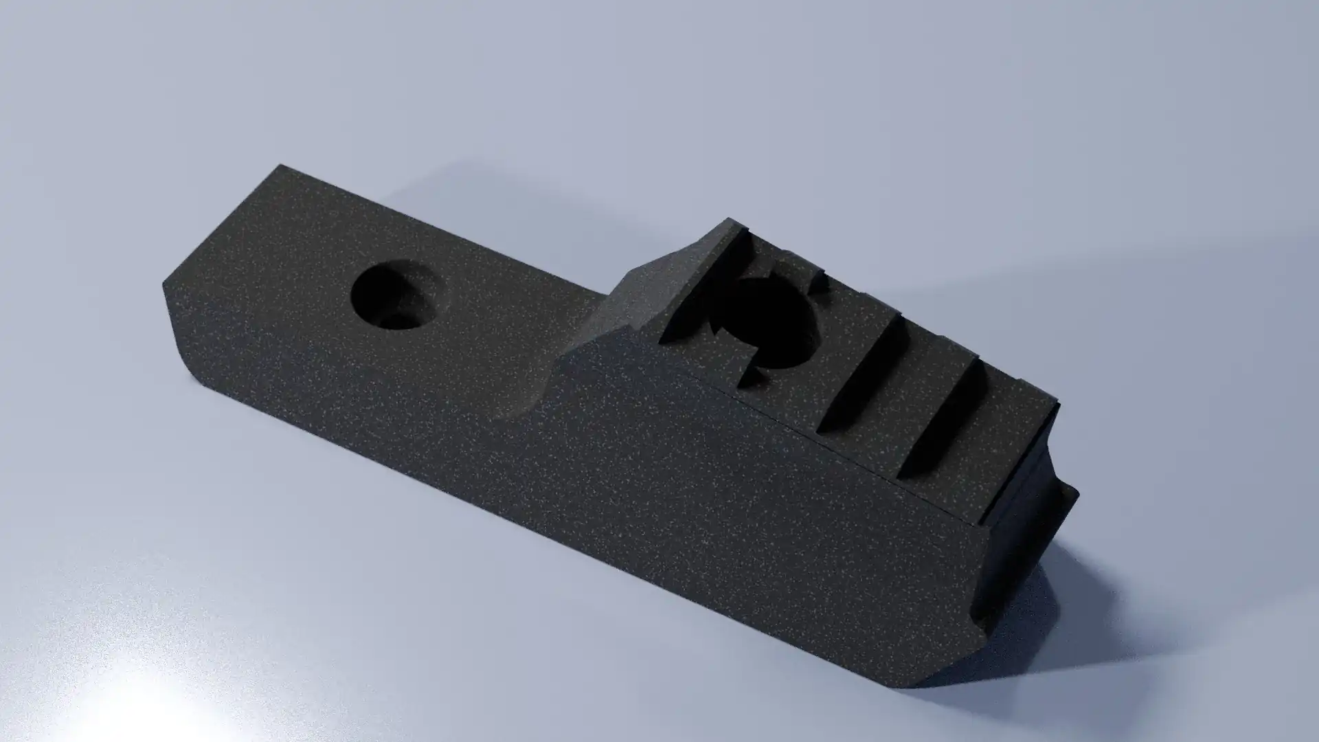 Conçue et fabriquée par nos soins, cette plaquette est un composant modulaire qui remplace directement la plaquette inférieure fournie avec la crosse Boyds AT-ONE. Dimensionnellement identique à l’original, elle intègre une section de 4 fentes de rail Picatinny pour permettre la fixation d’un stabilisateur de type monopod ou de tout autre accessoire compatible.