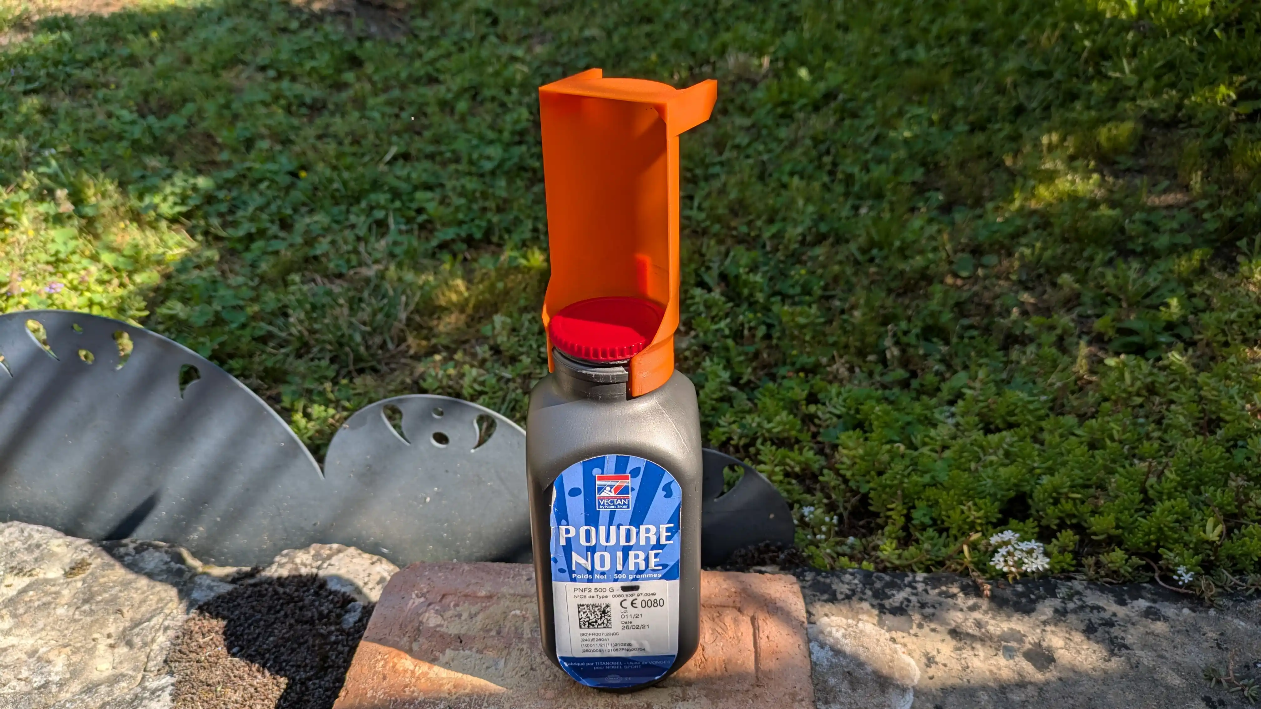 Conçue pour s’adapter aux flacons VECTAN 500 gr et aux contenants de format similaire, elle canalise la poudre noire vers votre doseur sans manipulation inutile — idéale sur le pas de tir.