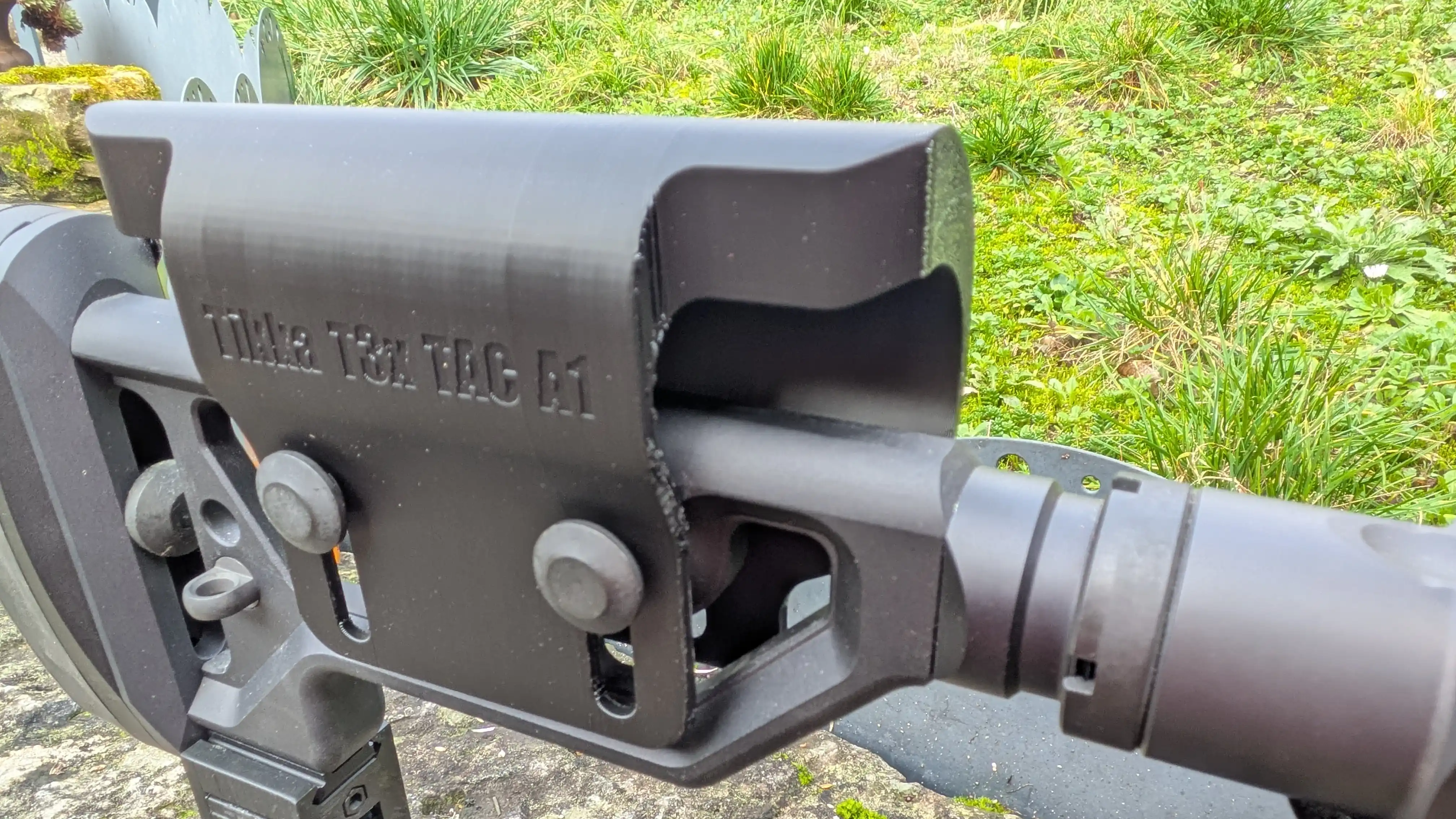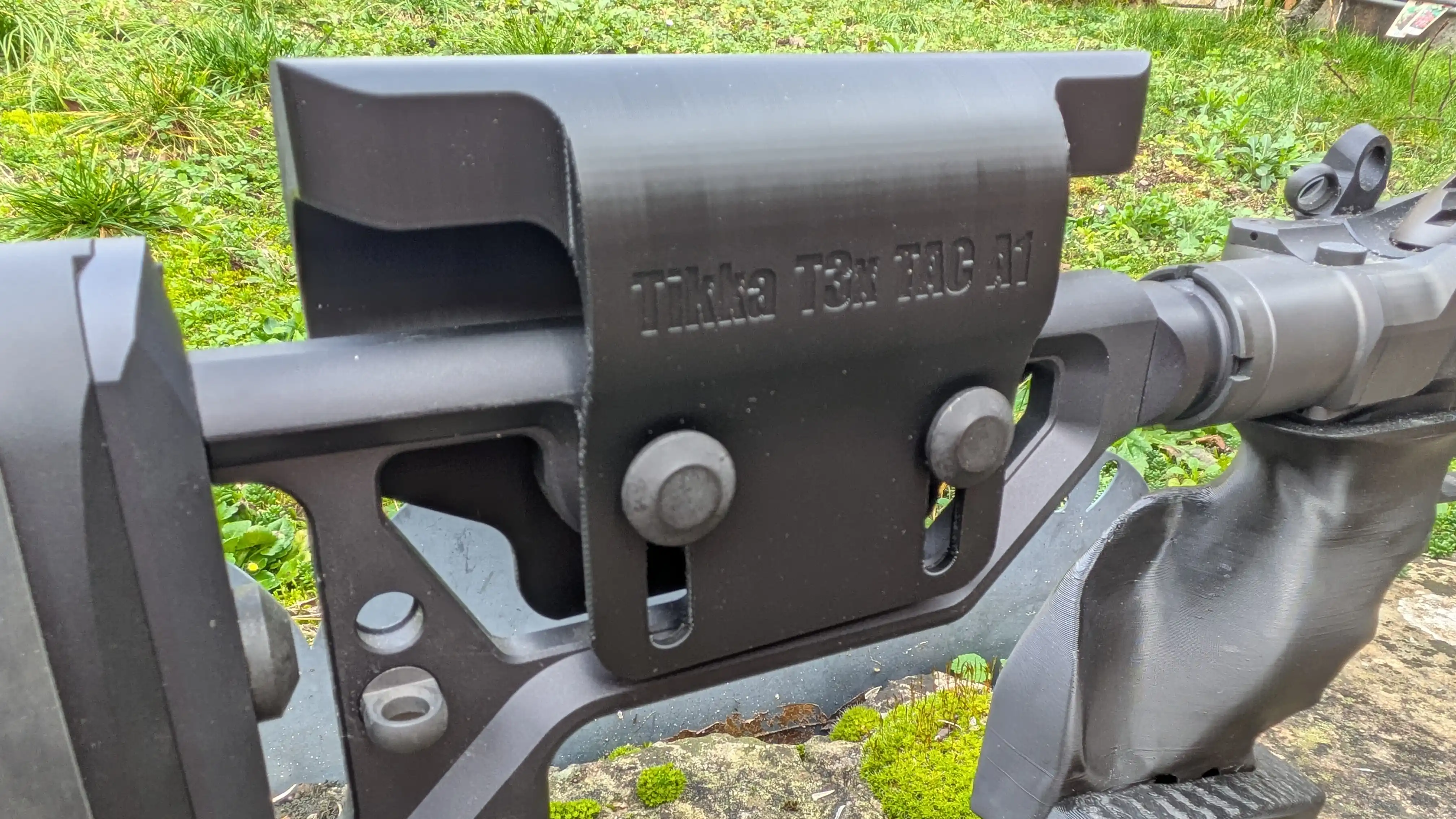 Le cheek riser d’origine du T3x TAC A1 convient à une morphologie standard. Dès que vous montez une lunette avec un oculaire haut, une visée nocturne ou un collecteur de lumière, le positionnement de la tête devient inconfortable et votre ligne de tir en pâtit.