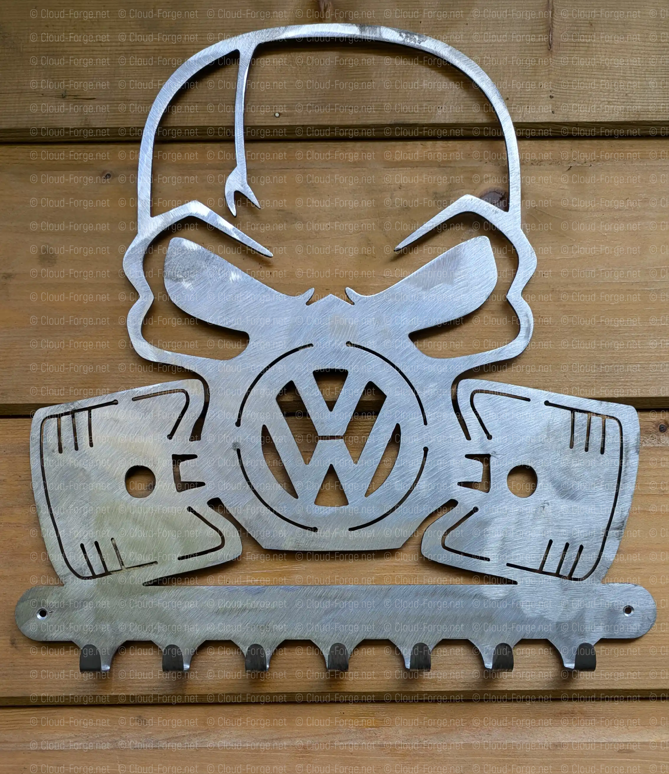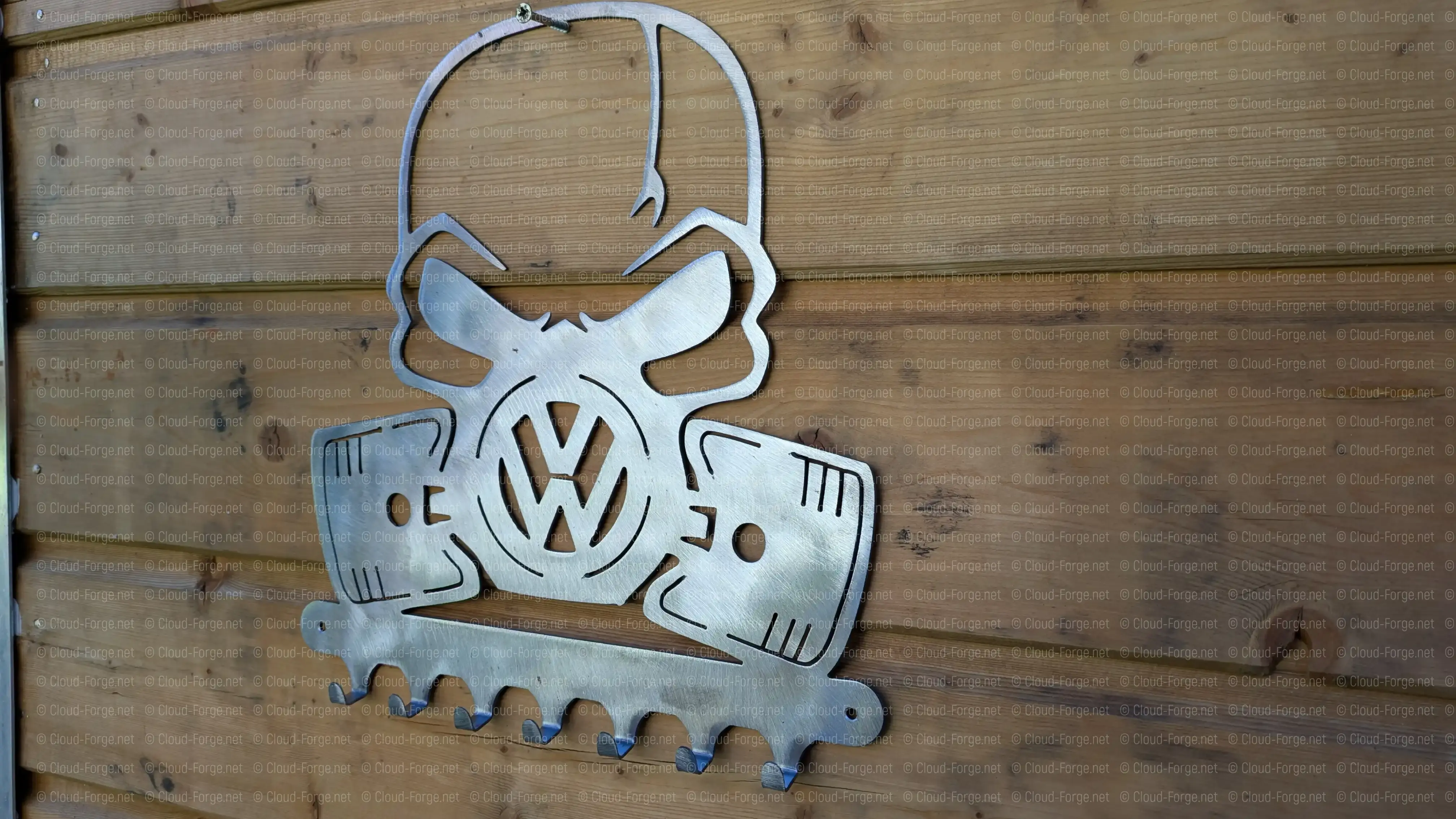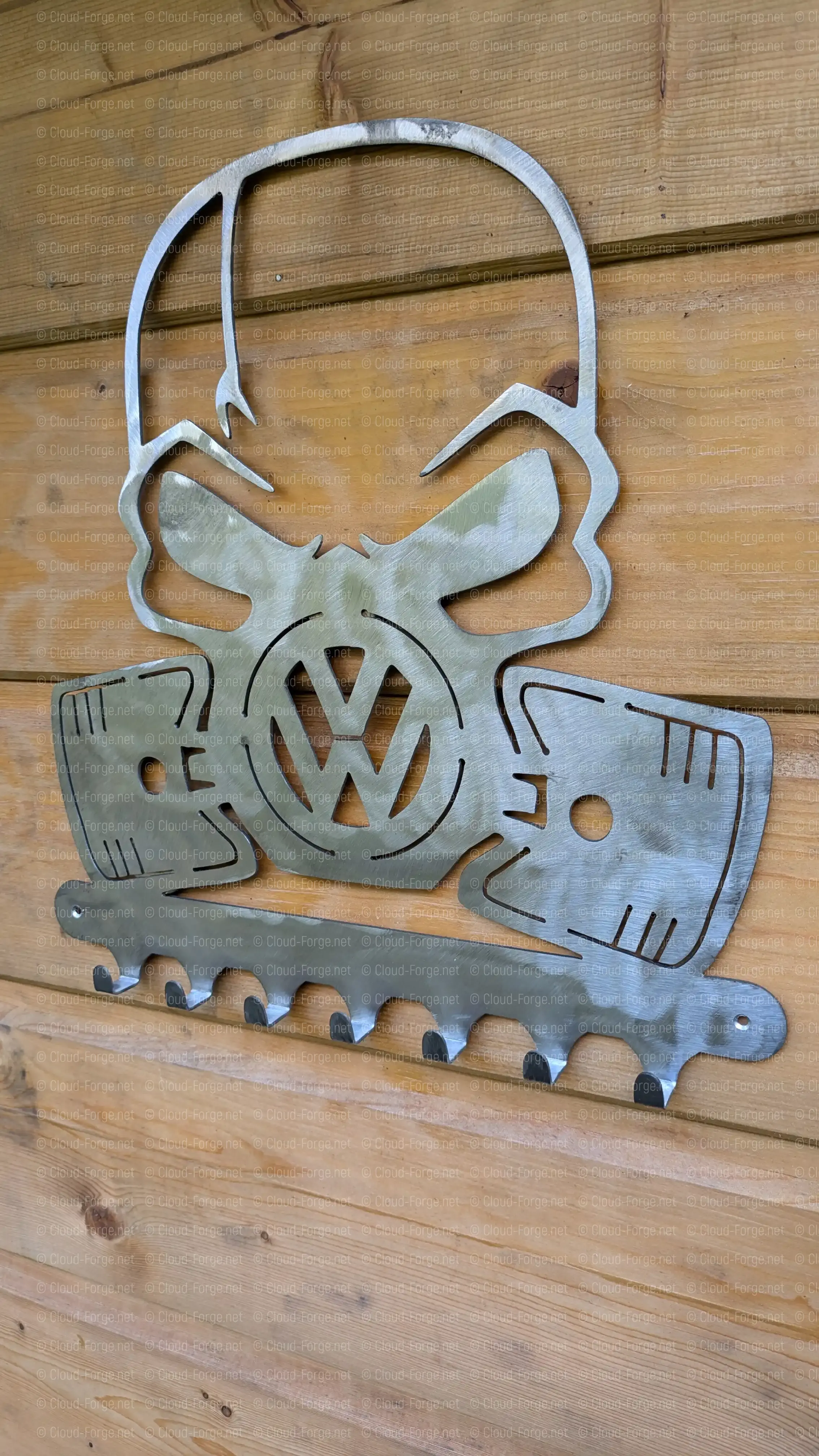 Idéal dans un garage, un atelier ou un bureau de passionné. Le motif VW est découpé avec précision dans de l’acier 1,5 mm et livré en finition métal nu (patine naturelle) ou en peinture noire mat (+10 €).
