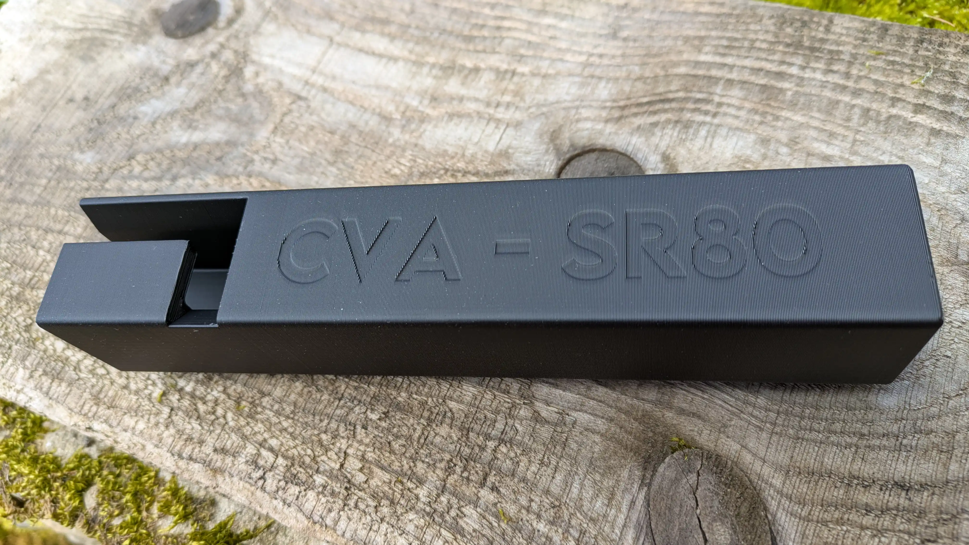 Le modèle « CVA SR80 » est identifié directement sur l’étui — pas d’étiquette, pas de confusion quand vous avez plusieurs culasses sur l’établi.