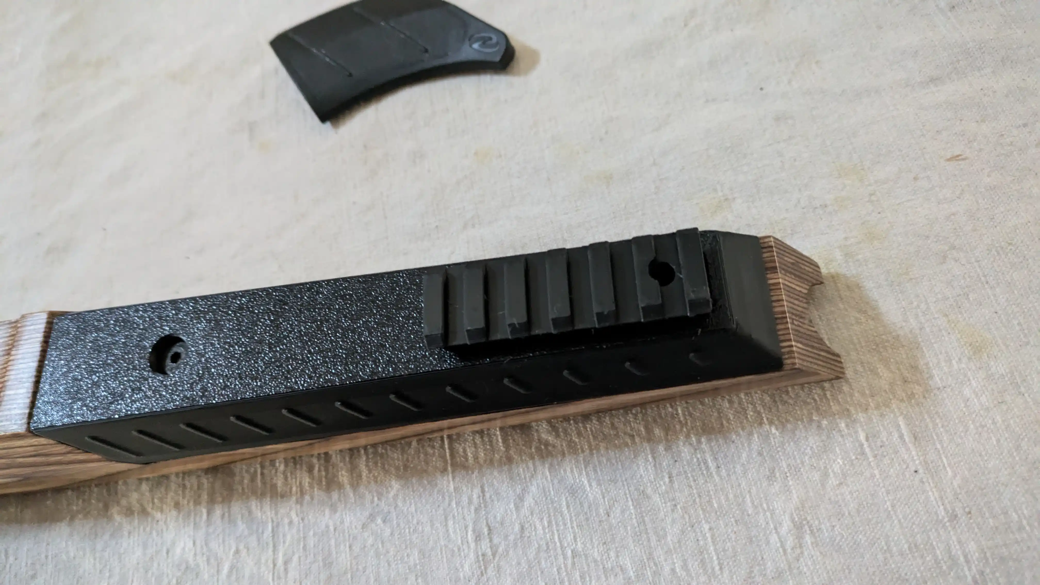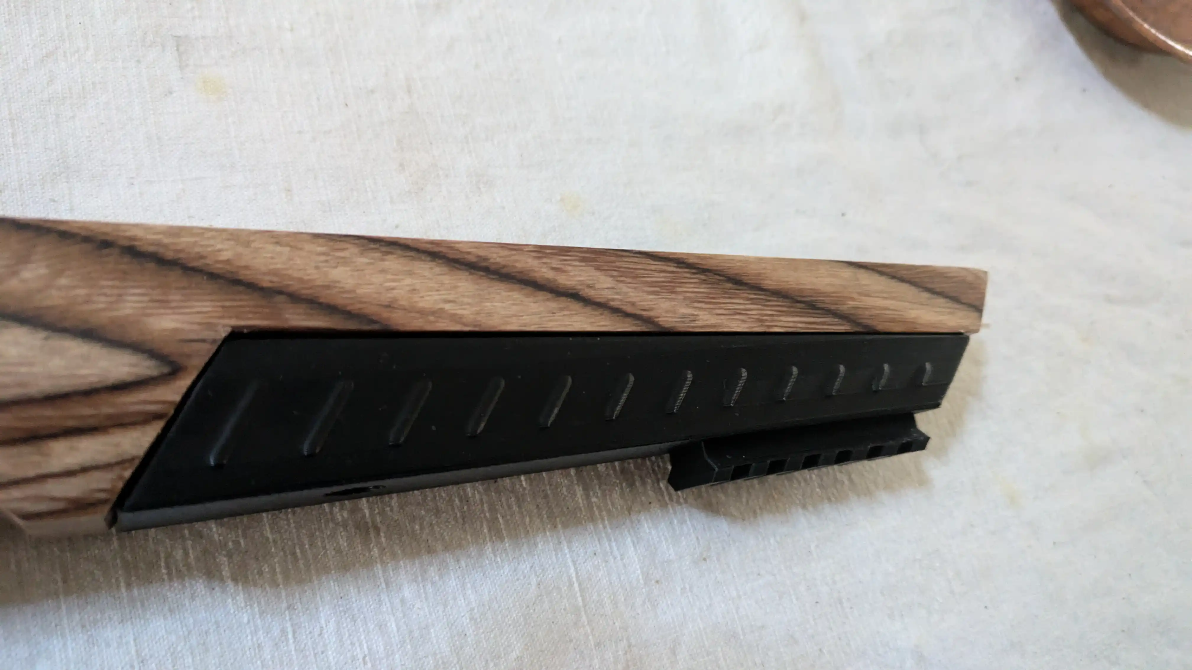 Conçu et fabriqué par nos soins, ce garde-mains est un composant modulaire qui remplace directement celui fourni avec la crosse Boyds AT-ONE. Dimensionnellement identique à l’original, il intègre une section de 6 fentes de rail Picatinny pour permettre la fixation d’un bipied ou de tout autre accessoire compatible.