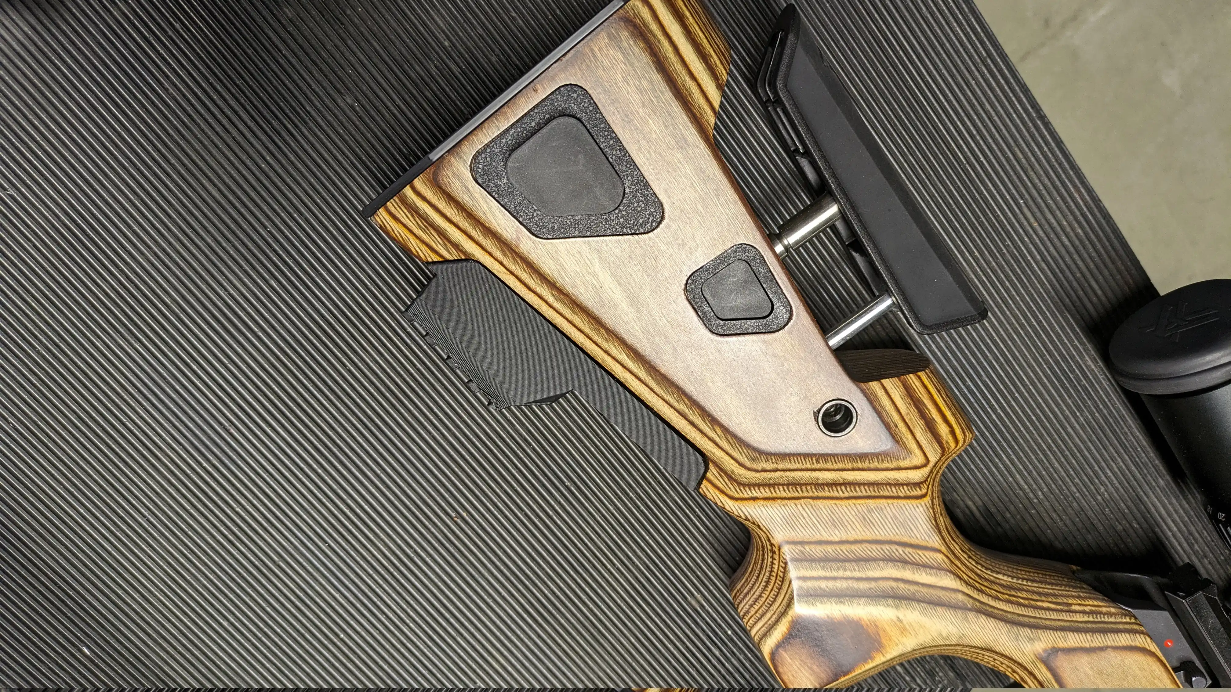 Conçue et fabriquée par nos soins, cette plaquette est un composant modulaire qui remplace directement la plaquette inférieure fournie avec la crosse Boyds AT-ONE. Dimensionnellement identique à l’original, elle intègre une section de 4 fentes de rail Picatinny pour permettre la fixation d’un stabilisateur de type monopod ou de tout autre accessoire compatible.