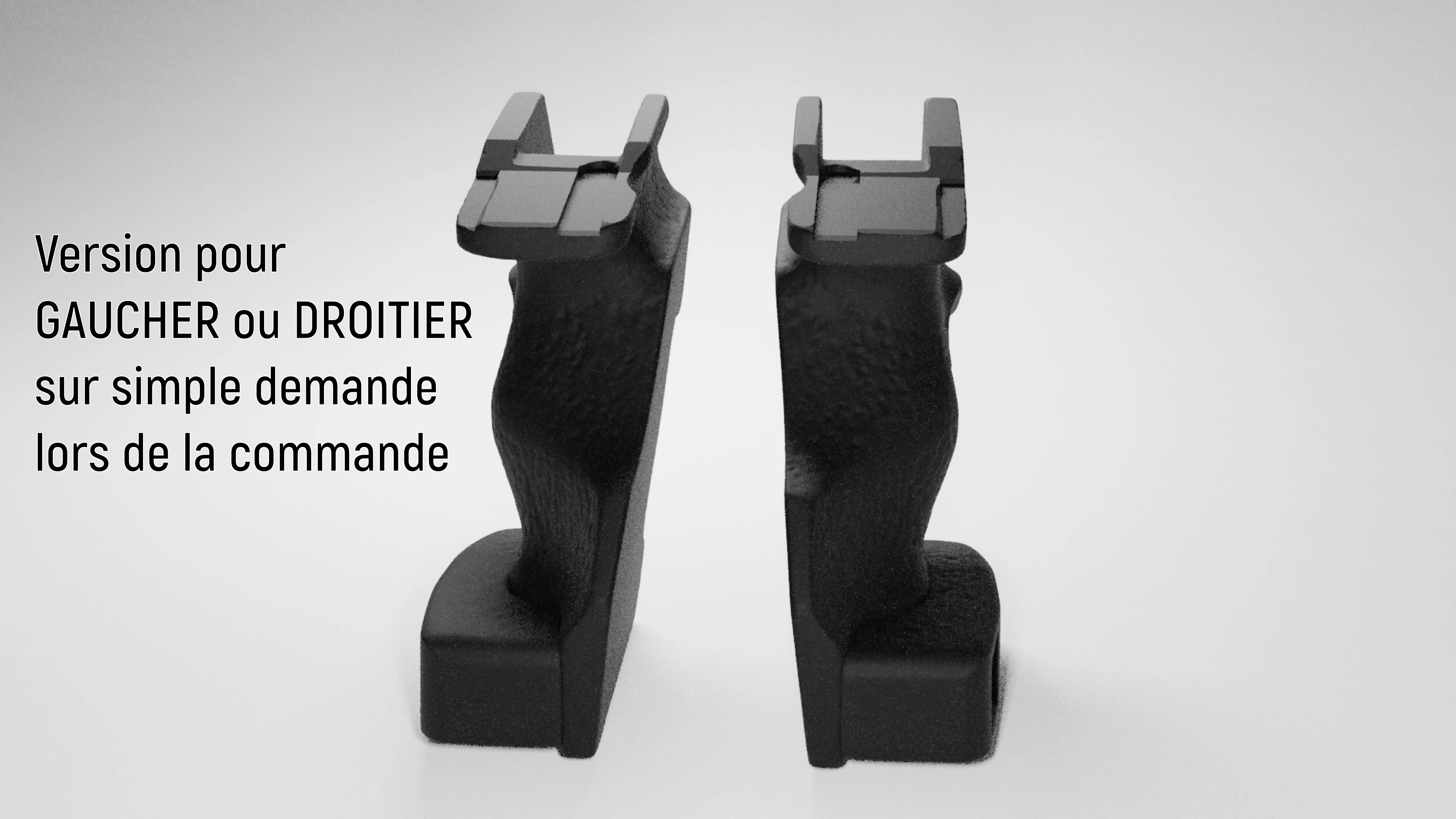 Conçue et fabriquée par nos soins en impression 3D, cette crosse offre une prise en main ergonomique et sur-mesure pour votre Steyr LP50. Elle se compose de deux éléments : la crosse principale et le garde-paume, pour un résultat soigné et un confort optimal en compétition.