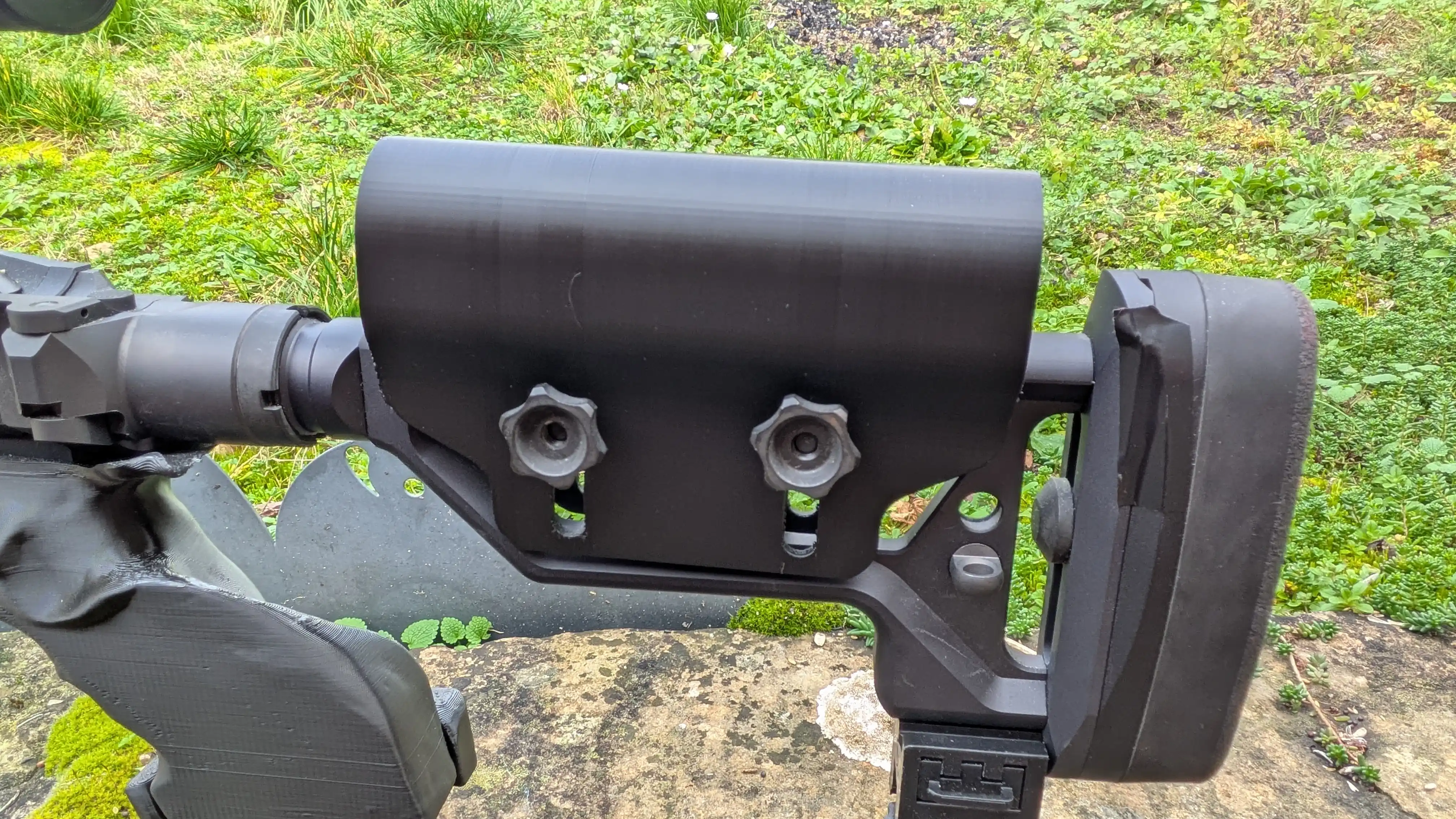 Le cheek riser d’origine du T3x TAC A1 convient à une morphologie standard. Dès que vous montez une lunette avec un oculaire haut, une visée nocturne ou un collecteur de lumière, le positionnement de la tête devient inconfortable et votre ligne de tir en pâtit.